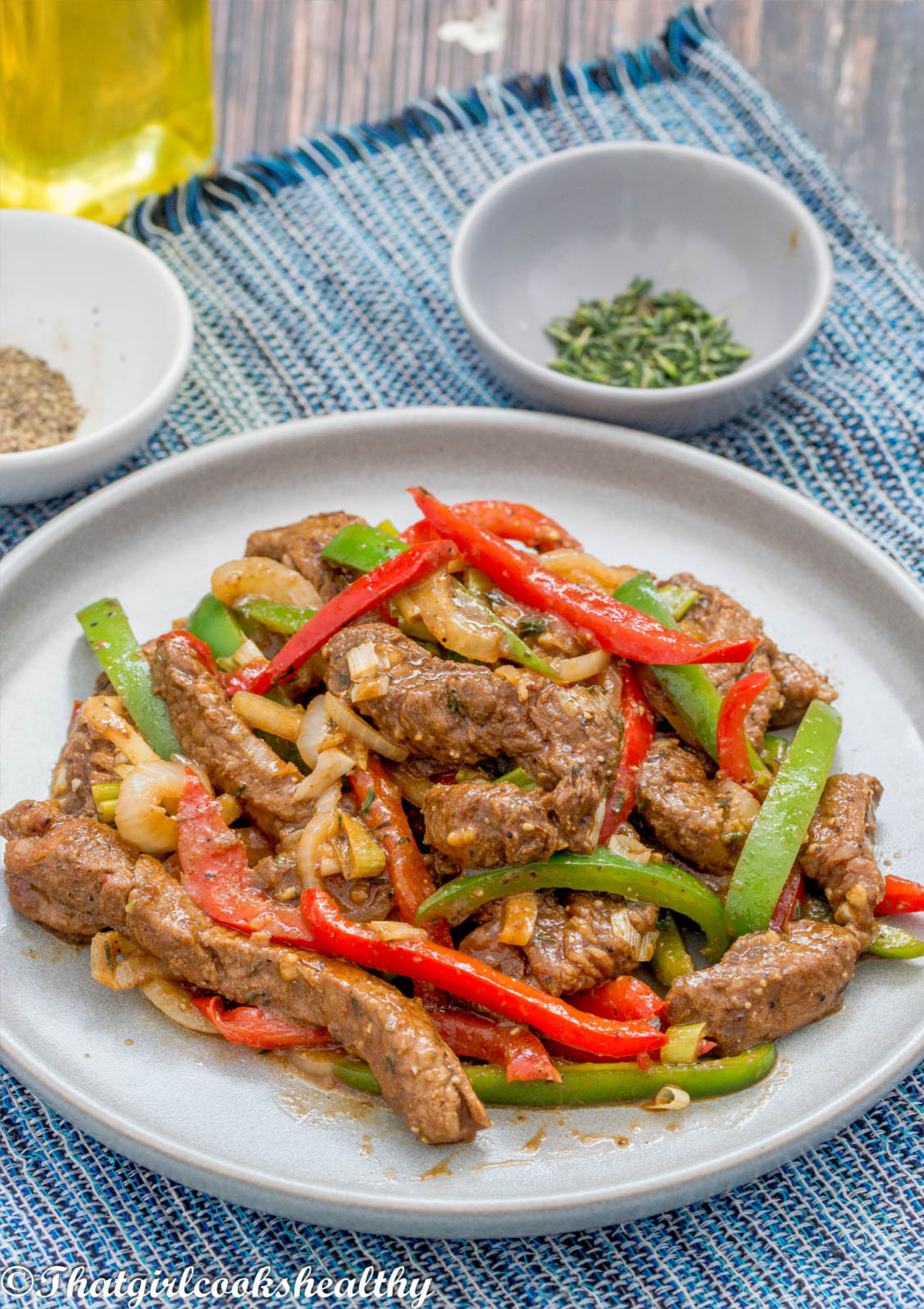 I'm talking about a Caribbean take on a Chinese American pepper steak dish where lean strips of beef are then seasoned, marinated and then seared until beautifully brown with bell peppers and then cooked down in a flavourful sauce.